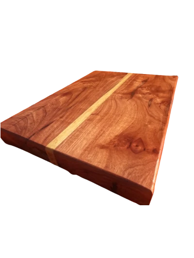 High quality heavy duty natural wood chopping block with a yellow strip.